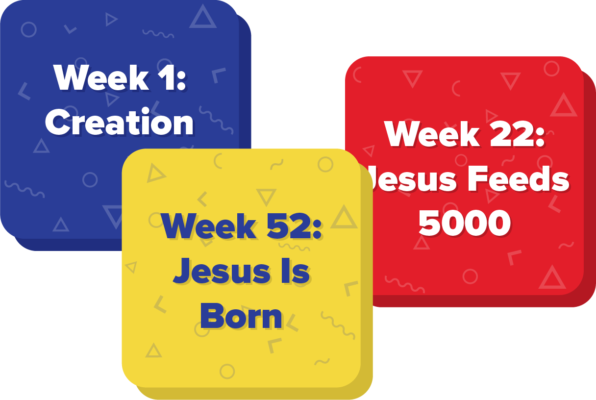 Crosstown follows a yearly calendar, beginning in January with creation and concluding with the Christmas story in December. With anchor lessons at Easter and Christmas, you can customize the order of the lessons to begin at any point in the year. View the recommended calendar and find information about each lesson in the scope and sequence.